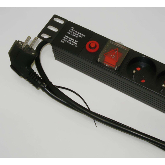 Vertikálny rozvodný panel XtendLan 20x230V, ČSN, vypínač, nadprúdová ochrana, kábel 1,8m, výška 1U