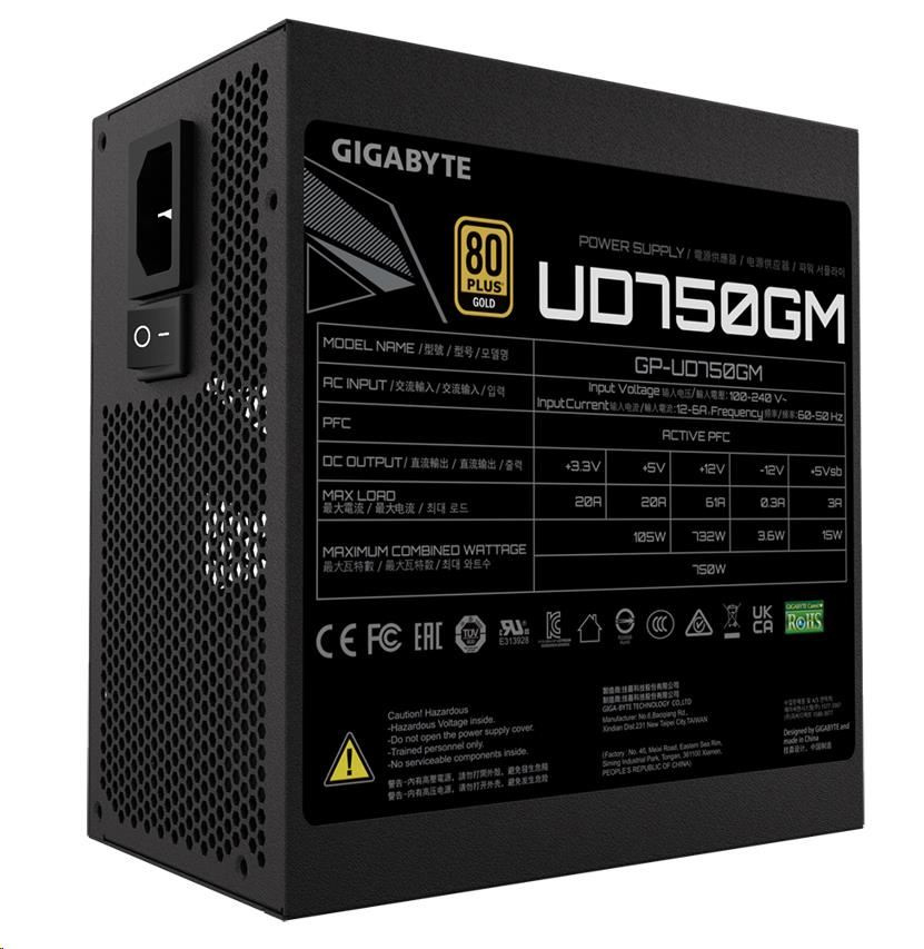 BAZAR - GIGABYTE zdroj UD750GM, 750W, 80+ Gold, 120mm fan - Po opravě (Komplet)