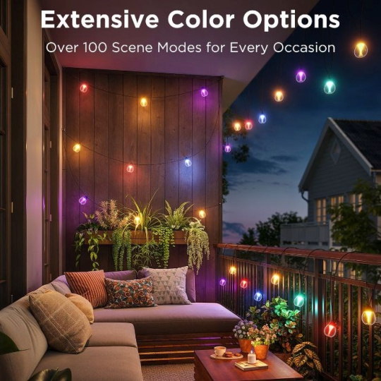 Vďaka integrácii inteligentnej domácnosti a podpore hlasových asistentov, ako sú Siri, Amazon Alexa alebo Google Assistant, môžete svetlá pohodlne ovládať hlasom alebo automaticky v rámci systému inteligentnej domácnosti. Vďaka kompatibilite so systémom Matter reťaz funguje aj so systémom Homekit. Elegantné priehľadné žiarovky zabezpečujú široké pokrytie priestoru a zároveň vytvárajú príjemné, útulné svetlo, ktoré zvýrazní krásu vašej záhrady, terasy alebo balkóna.