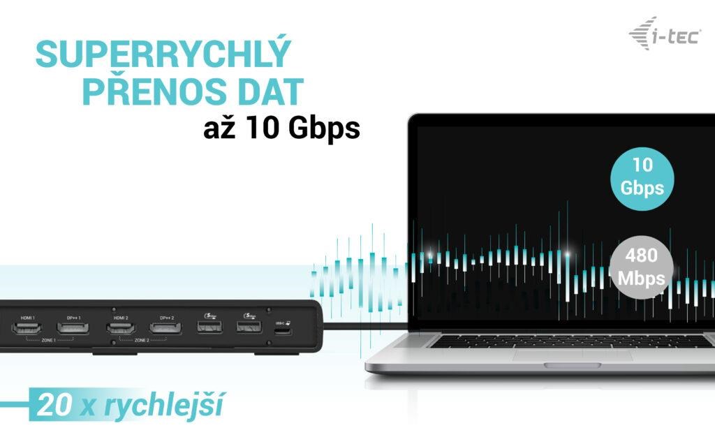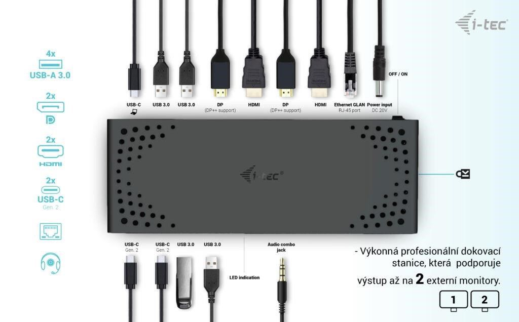 Výkonná kancelárska dokovacia stanica s podporou superrýchlych portov USB Gen 2. Dokovacia stanica podporuje výstup až na dva externé monitory vo vysokom rozlíšení až 4K. Dokovaciu stanicu je možné prakticky použiť so všetkými notebookmi, pretože podporuje pripojenie ku všetkým bežným portom: 3.0, USB-C a Thunderbolt 3/4 a zároveň podporuje všetky bežné súčasné operačné systémy.