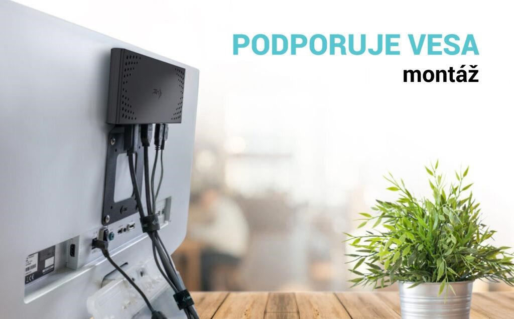 - Dokovacia stanica podporuje držiak VESA pre inteligentnú vertikálnu inštaláciu za monitor s podporou VESA