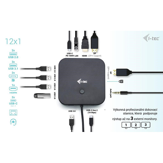 BAZAR - i-tec USB-C HDMI + Dual DP Docking Station + PD 100 W + Universal Charger 112 W - Po opravě (Náhradní krabice)