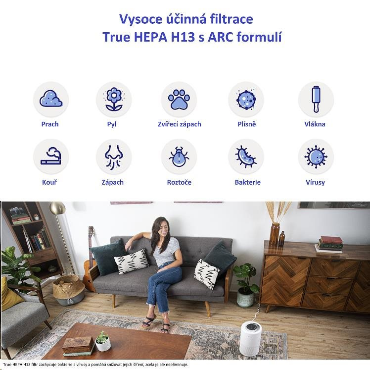 - Kvalitní sytém filtrace – filtre HEPA H13 a ARCTM formula