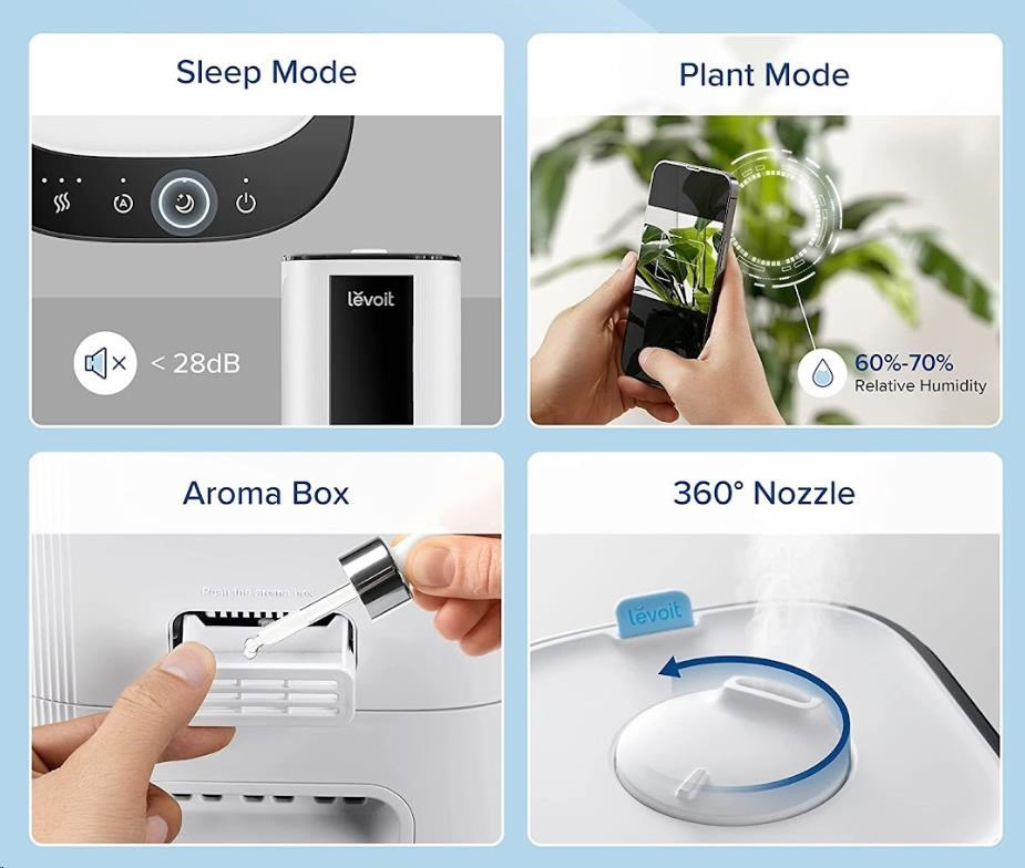 Rovnako ako ľudia, aj rastliny potrebujú správnu vlhkosť, aby sa im dobre darilo. So zvlhčovačom Levoit OasisMist Smart budú vaše kvety v dobrej starostlivosti a skvelej kondícii aj počas suchých období. Vďaka automatickému programu a možnosti nastavenia časových harmonogramov poskytnete vašim rastlinám potrebnú starostlivosť.