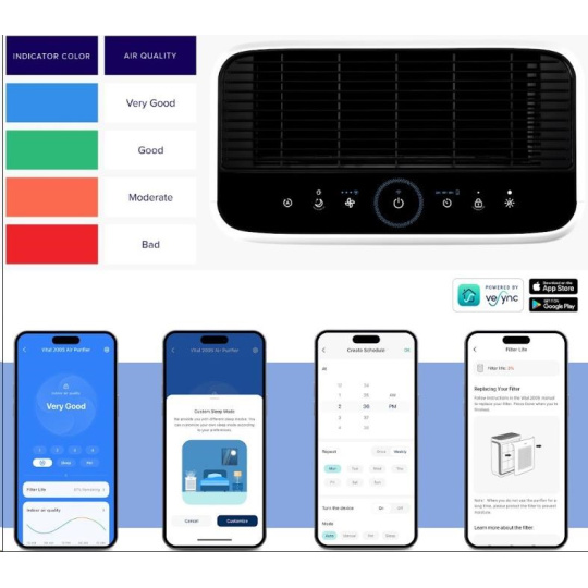 Chcete mať doma čistý vzduch ako prevenciu pred ochorením horných dýchacích ciest alebo ste alergik či astmatik? Chytrá čistička Levoit Vital 100S vďaka vysoko kvalitnej 3-vrstvovej filtrácii s filtrom HEPA H13 a omývateľným predfiltrom odstráni až 99,97% škodlivých látok a nečistôt, ktoré by ste inak dýchali. Čistička Levoit Vital 100S je certifikovaná pre alergikov a disponuje výkonom 243 m3/h CAD pri 32W. Vďaka energeticky nenáročnému prevádzke získala ocenenie Energy Star. Ovládanie čističky vzduchu je naozaj jednoduché priamo na displeji alebo sa dá ovládať cez aplikáciu na chytrých zariadeniach Android alebo Apple (iOS). Levoit Vital 100S je vybavená senzorom snímania kvality vzduchu, na základe ktorého vie sama chytro upravovať výkon čistenia.