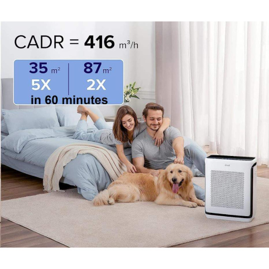Levoit Vital 200S PRO disponuje výkonom až 416 m3/h CAD a vyčistí dvakrát za hodinu miestnosť o veľkosti až 87 m2 a až päť krát za hodinu miestnosť o veľkosti 35 m2.