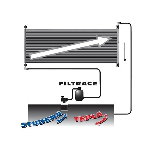 Solárny panel Slim 180 pohlcuje tepelnú energiu slnečných lúčov a odovzdáva ju vode, ktorá ním preteká. Chladná voda z bazéna je pomocou bazénovej filtračnej sústavy vháňaná do solárneho panelu, kde sa ohrieva a vracia sa späť do bazéna. Solárny panel Slim napojíte na hadice o priemere 32 aj 38 mm.