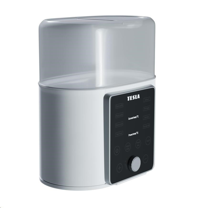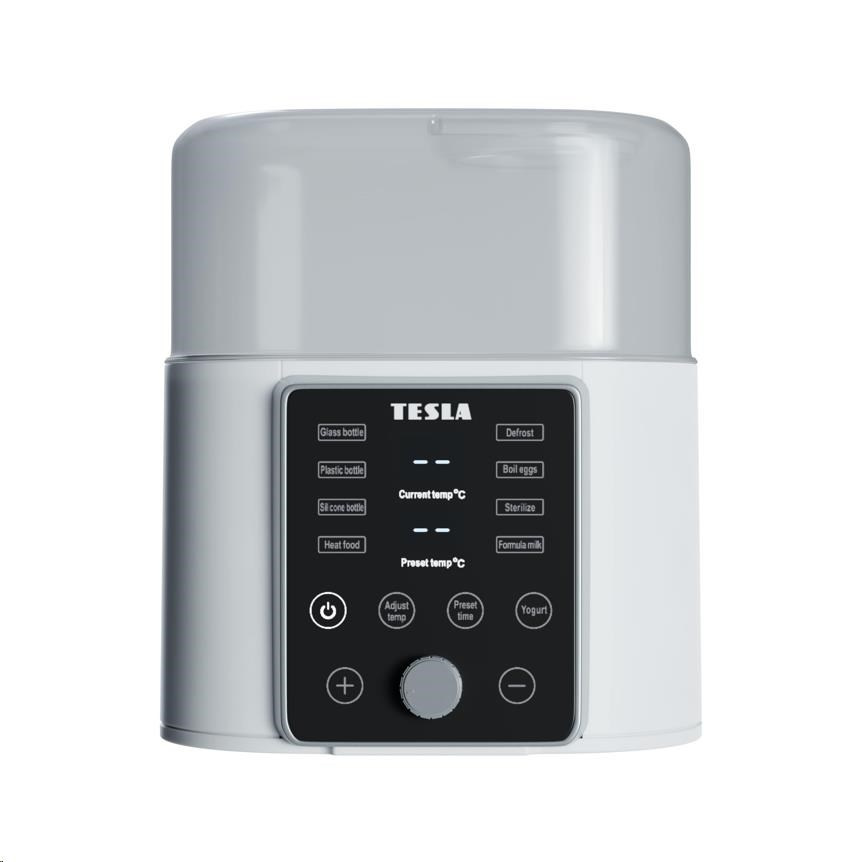 Tesla Multi Sterilizer MS 100 je multifunkčný prístroj, ktorý ponúka 7 programov a pomôže v mnohých bežných situáciách. Nestíhate? Vyberte jedlo z mrazničky, sterilizátor ho rozmrazí. Niečo sa prihodilo a nemôžete ihneď podávať? Nevadí. Teplotu udrží aj niekoľko hodín. Dieťa už spí a máte všetko sterilizované? Uvarte mu v ňom ešte vajíčka na večeru. Nemáte čo ráno raňajkovať? Tesla Multi Sterilizer MS 100 vám pripraví výživný domácí jogurt.