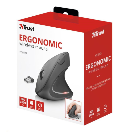 BAZAR - TRUST Myš Verto wireless ergonomic mouse USB, black (černá) - Poškozený obal (Komplet)