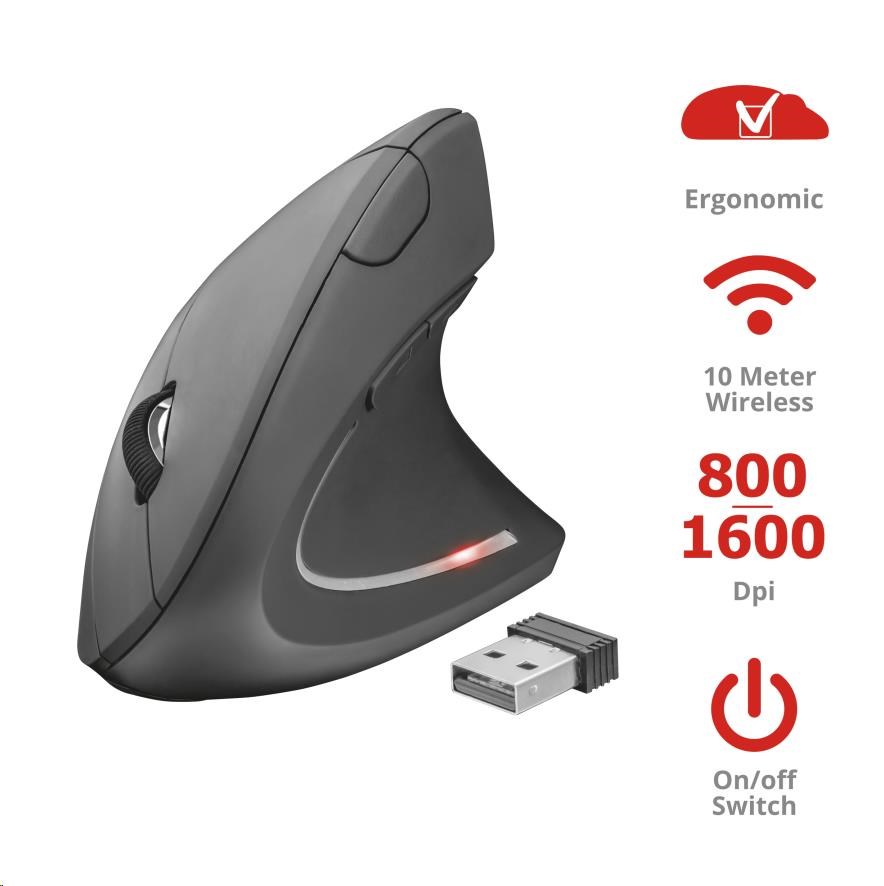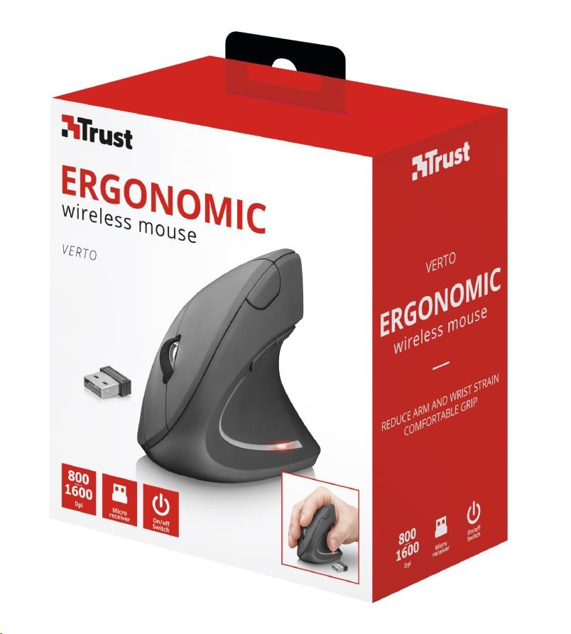 BAZAR - TRUST Myš Verto wireless ergonomic mouse USB, black (černá) - Poškozený obal (Komplet)