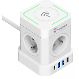 Síťový adaptér Viking ACT44W přináší multifunkční řešení pro vaše elektronická zařízení. Se čtyřmi standardními výstupy AC (230V), třemi porty USB-A (5V/2.4A), a jedním portem USB-C PD (20W max) s podporou rychlého nabíjení, tento adaptér umožňuje nabíjení až 9 zařízení najednou.