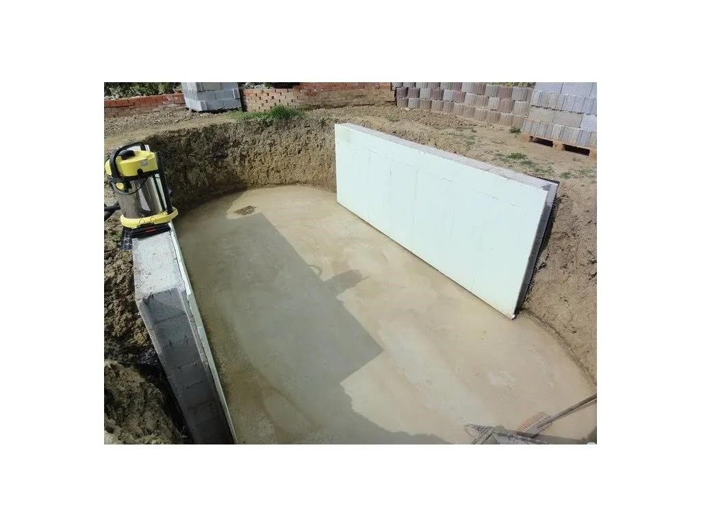 Postavený bazén odporúčame odizolovať (napríklad Styrodur) a zasypať suchým betónom.