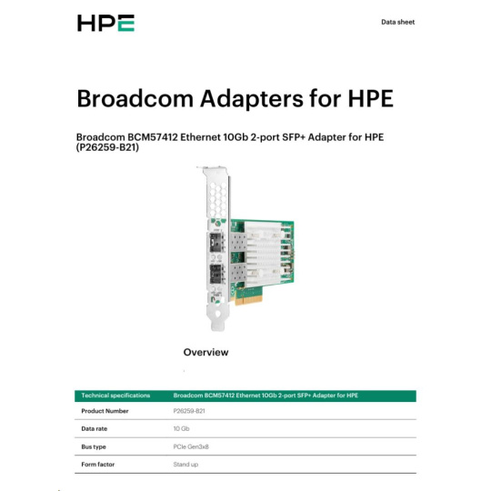Broadcom BCM57412 Ethernet 10Gb 2-port SFP+ Adapter for HPE (P26259-B21)
