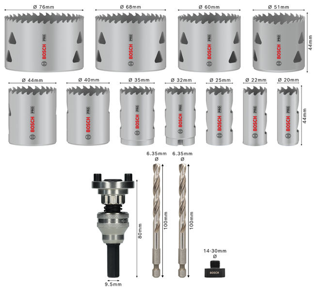 Vďaka 8% podielu kobaltu vydrží až 2× dlhšie ako štandardná dierovačka HSS M3 - Elektrikári a inštalatéri považujú dierovačky za neoceniteľné pri montáži potrubí, elektroinštalačných krabíc a zapustených svietidiel. Ideálne by s sebou chceli nosiť len jeden druh dierovačky na všetky činnosti a materiály, s ktorými sa stretnú v interiéroch. Preto ponúkame dierovačku PRO Multi Material. Dierovačka PRO Multi Material má vylepšený tvar zubov pre rýchle a hladké rezy. Jej zuby sú kvôli dlhej životnosti vyrobené zo zliatiny ocele HSS s vysokým obsahom kobaltu. Ponúka efektívne vŕtanie otvorov do oceľových obkladov a sadrokartónu. Unášací Q-Lock uľahčuje nielen rýchlu výmenu dierovačky aj strediacich vrtákov, ale aj odstránenie odvrtaného materiálu. Pre použitie s dierovačkami so závitom, hĺbka rezu 44 mm.