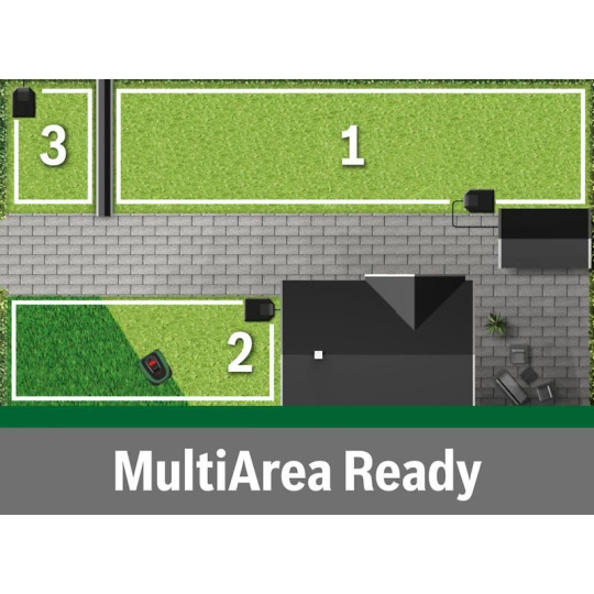 Vďaka funkcii MultiArea poseče viac trávnatých plôch (až do 700 m2) a vyporádá sa s úzkymi prechodmi (75 cm medzi drôtmi).