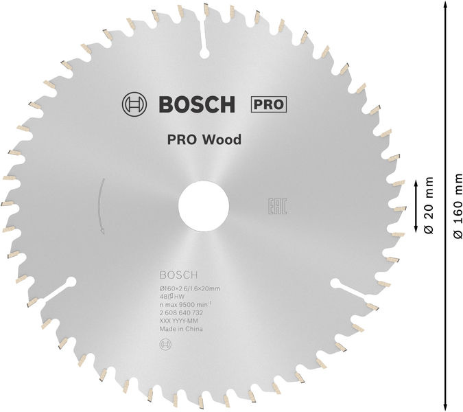 Bosch pilový kotouč PRO Wood pro okružní pilu, 160 × 2,6 × 20 mm, T48
