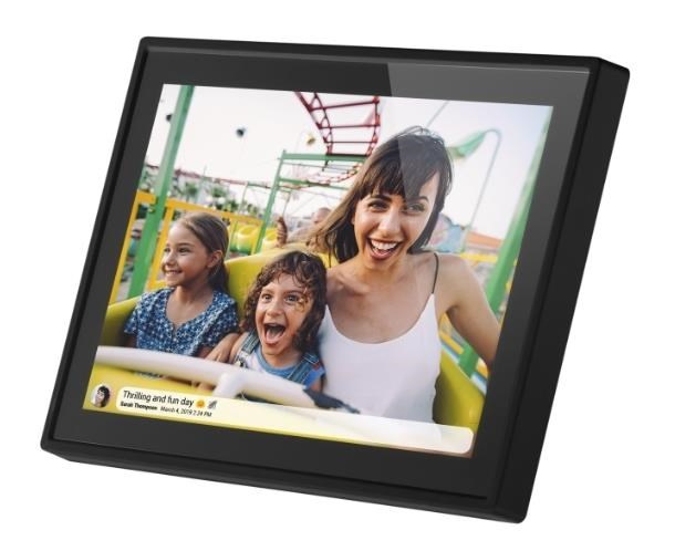 WiFi digitálny fotorámik s uhlopriečkou 10", rozlíšením 1280x800px, 16:10 IPS, prehrávanie JPEG/MP3/Videá, 16GB interná pamäť, aplikácia FRAMEO (Android/iOS, FREE) na zasielanie obrázkov a videí z telefónu, G-senzor pre h/v pozíciu, micro SDHC slot, micro USB, biely. WLAN modul 802.11 b/g/n, opierka na stôl, jednoduchá obsluha a nastavenie pomocou bezplatnej aplikácie FRAMEO, ideálny na aktualizáciu obsahu a nastavenie rámiku z telefónu doma aj na cestách, možnosť horizontálneho aj vertikálneho prevádzky, vnútorná pamäť pre až 999 obrázkov, maximálny čas videa 15s, micro SD karty do 32GB. Rozmery 267x195x23mm, hmotnosť 540g, sieťový zdroj 5V/2A.