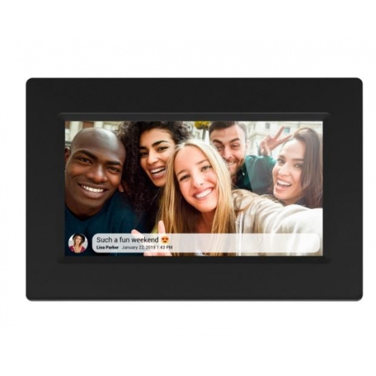 https://reflecta.de/ WiFi digitálny fotorámček s uhlopriečkou 7", rozlíšením 1024x600px, 16:9 IPS, prehrávanie JPEG/MP3/Videá, 8GB interná pamäť, aplikácia FRAMEO (Android/iOS, FREE) na posielanie obrázkov a videí z telefónu, G-senzor pre h/v pozíciu, micro SDHC slot, micro USB, čierny. WLAN modul 802.11 b/g/n, opierka na stôl, jednoduchá obsluha a nastavenie pomocou bezplatnej aplikácie FRAMEO, ideálny na aktualizáciu obsahu a nastavenie rámčeka z telefónu doma aj na cestách, možnosť horizontálneho aj vertikálneho prevádzkovania, vnútorná pamäť na až 999 obrázkov, maximálna dĺžka videa 15s, micro SD karty do 32GB. Rozmery 195x126x17mm, hmotnosť 306g, sieťový zdroj 5V/2A.