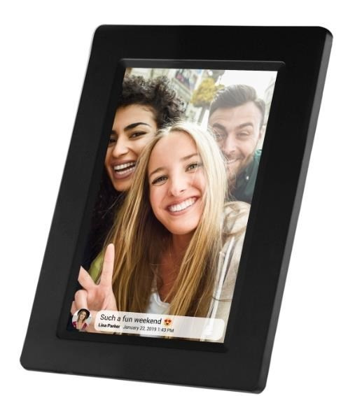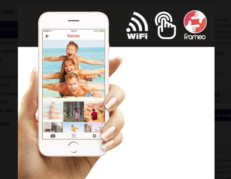 https://reflecta.de/ WiFi digitálny fotorámček s uhlopriečkou 7", rozlíšením 1024x600px, 16:9 IPS, prehrávanie JPEG/MP3/Videá, 8GB interná pamäť, aplikácia FRAMEO (Android/iOS, FREE) na posielanie obrázkov a videí z telefónu, G-senzor pre h/v pozíciu, micro SDHC slot, micro USB, čierny. WLAN modul 802.11 b/g/n, opierka na stôl, jednoduchá obsluha a nastavenie pomocou bezplatnej aplikácie FRAMEO, ideálny na aktualizáciu obsahu a nastavenie rámčeka z telefónu doma aj na cestách, možnosť horizontálneho aj vertikálneho prevádzkovania, vnútorná pamäť na až 999 obrázkov, maximálna dĺžka videa 15s, micro SD karty do 32GB. Rozmery 195x126x17mm, hmotnosť 306g, sieťový zdroj 5V/2A.