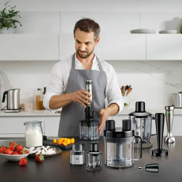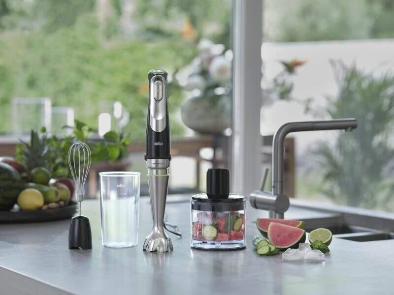 Tyčový mixér Braun MQ 9135BK MultiQuick 9 dokáže vďaka technológiám ActiveBlade a PowerBell vytvoriť najjemnejšie kulinárske výtvory. So 3 režimami rýchlosti iMode a technológiou proti frkaniu surovín SplashControl zvládne v kuchyni takmer všetko.