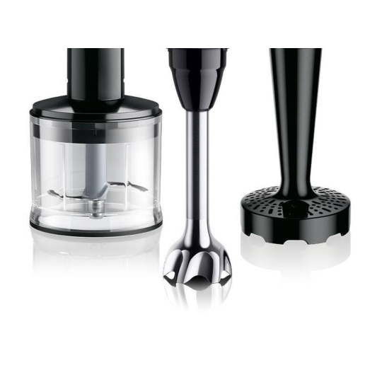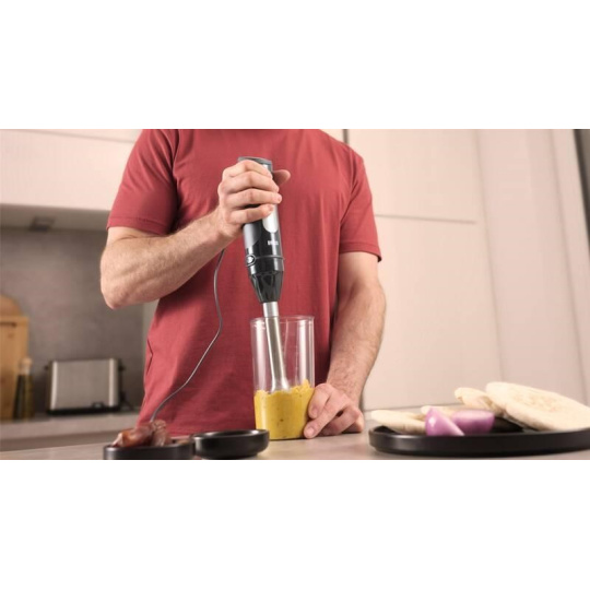 Ponorný mixér Braun MQ55.307M MultiQuick 5 Pro sa stane vaším nepostrádateľným pomocníkom v kuchyni. Poteší svojím špičkovým výkonem, ktorý dosahuje 1 000 W. Vybrať si môžete z 25 rýchlostí a režimu Turbo, ktorý z prístroja počas okamihu vytiahne maximum. Manipuláciu s prístrojom uľahčuje prítomnosť ergonomickej rukoväte. Samozrejmosťou je veľmi jednoduché ovládanie, ktoré si ľahko osvojíte. Výmenu jednotlivých nástavcov a príslušenstva zjednodušuje systém EasyClick Plus.