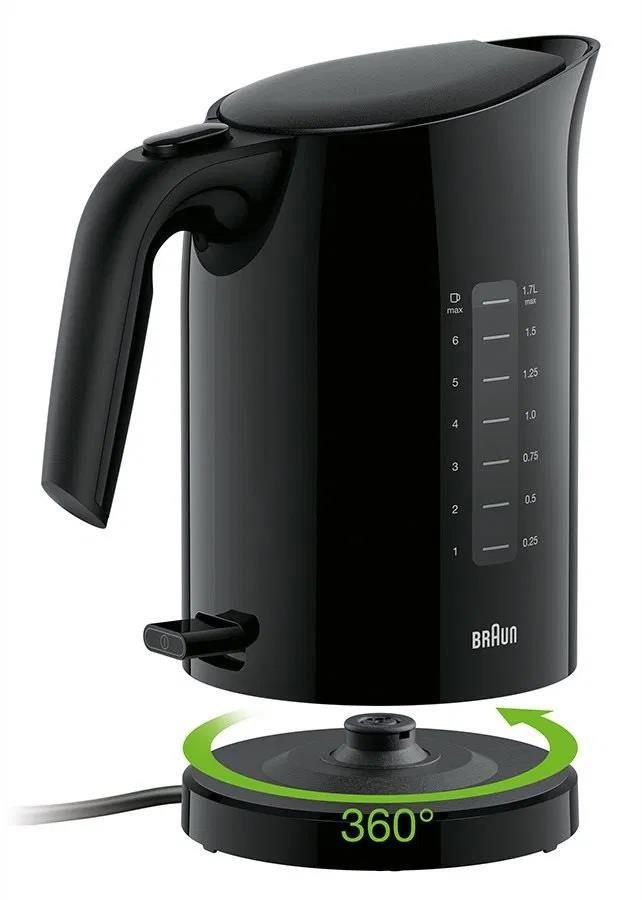 Braun WK 3100 BK PurEase rychlovarná konvice, 2200 W, otočná základna, 1.7 l, automatické vypnutí, černá