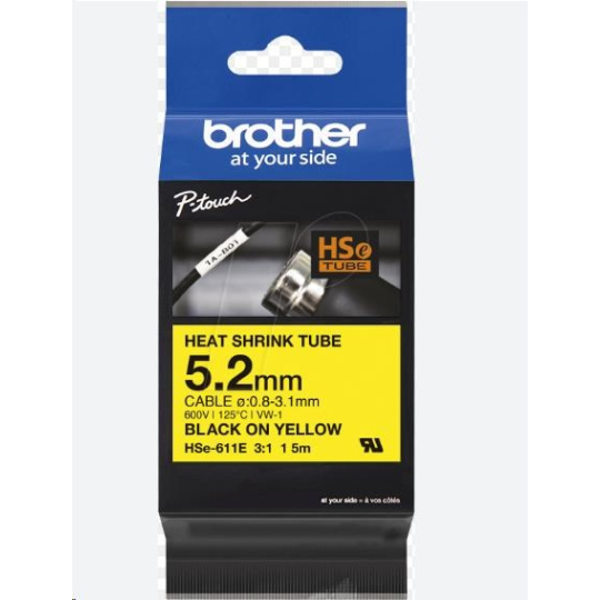 BROTHER smršťovací bužírka - HSE-611E žlutá pro E300VP H300 H500 E550 P700 P750 D800 P900 P950 - 5,2mm / o 0,8-3,1 / 3:1