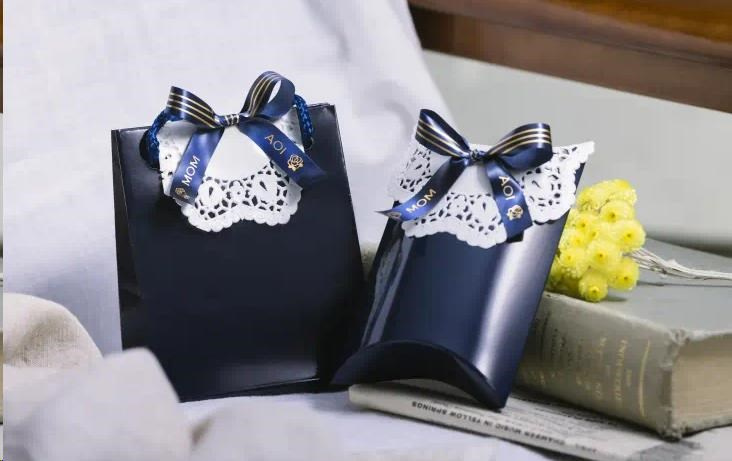 BROTHER TZE-RN34 - 12 mm široká TZ kazeta, TEXTILNÁ páska 4 m - na výrobu darčekov - NEPRIĽAHLÁ - MODRÁ PÁSKA, ZLATÝ POTISK