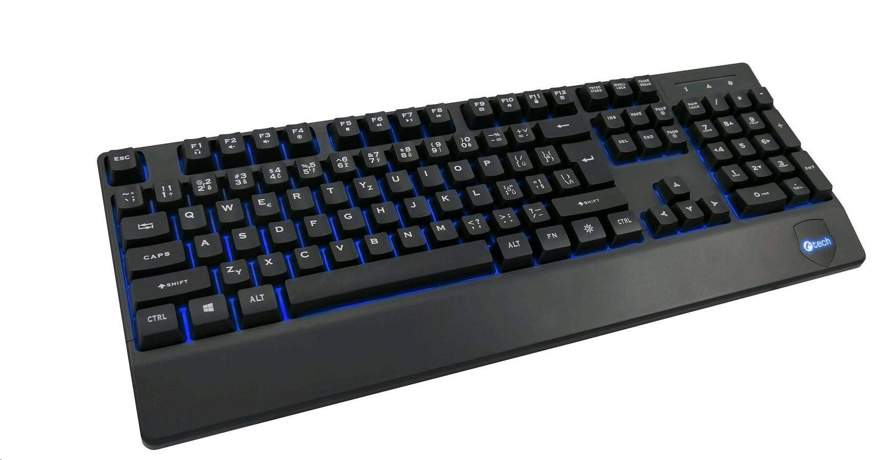 C-TECH Klávesnice KB-104BK, USB, 3 barvy podsvícení, černá, CZ/SK