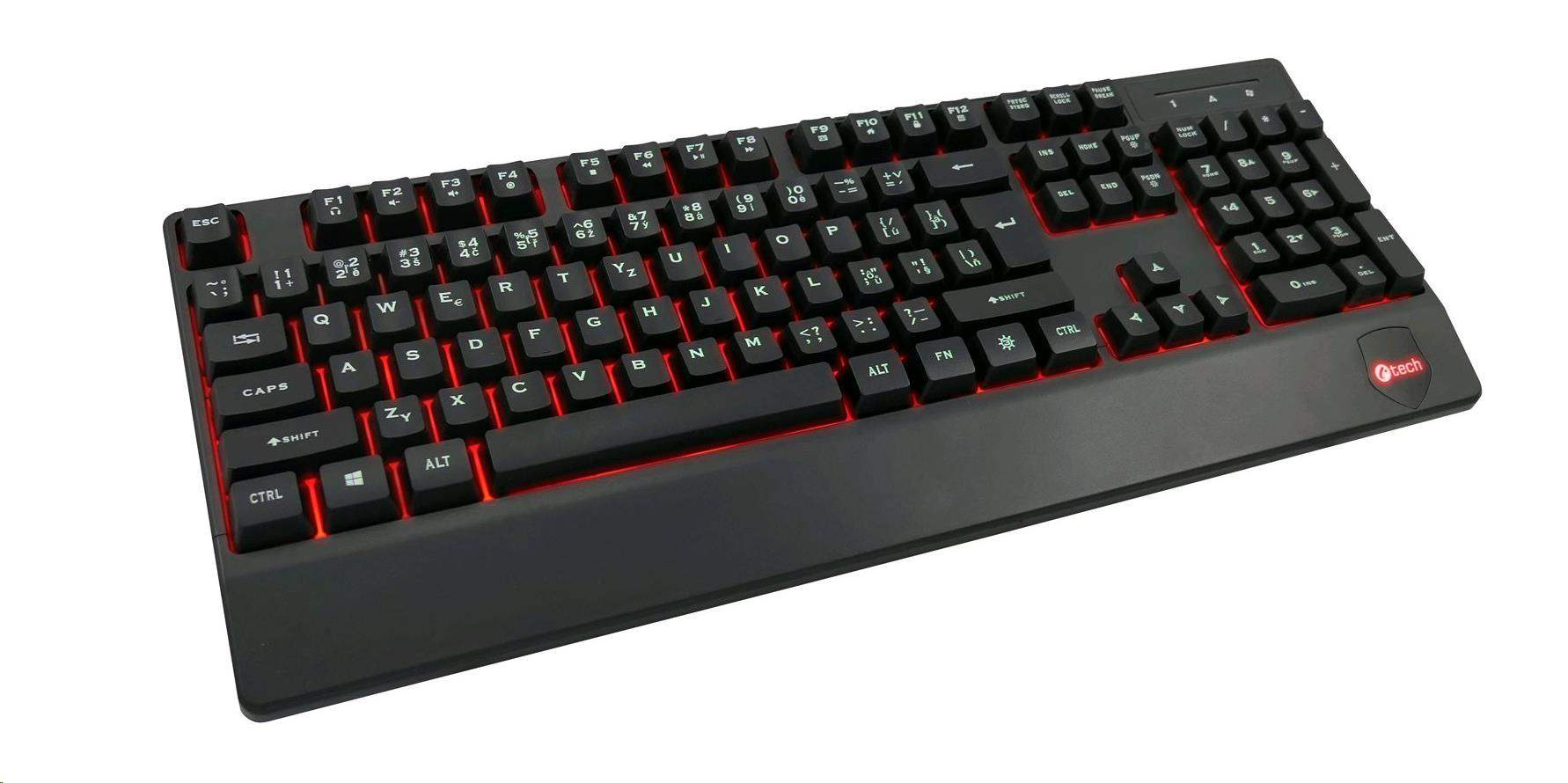 Klávesnica C-TECH KB-104BK, USB, 3 farby podsvietenia, čierna, CZ/SK