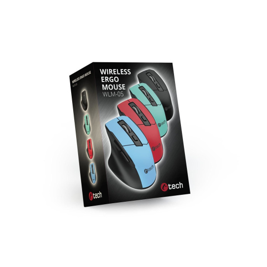 C-TECH myš Ergo WLM-05, bezdrátová, 1600DPI, 6 tlačítek, USB nano receiver, černá