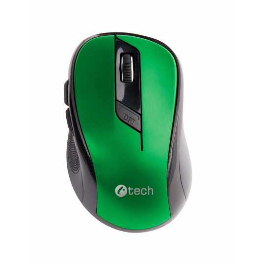 Myš C-TECH WLM-02, čierno-zelená, bezdrôtová, 1600DPI, 6 tlačidiel, USB nano prijímač