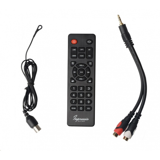V pohodlí obývačky pravdepodobne nebudete sedieť priamo pred reproduktorom, takže na jeho ovládanie budete častejšie používať priložený diaľkový ovládač. Zvládne väčšinu funkcií, ako napríklad: nastavenie hlasitosti, výber skladby alebo stanice FM, spustenie a pozastavenie prehrávania alebo výber zdroja zvuku medzi rozhraním Bluetooth, rádiom FM, pamäťou USB alebo kartou SD a vstupom LINE-IN, optickým a koaxiálnym vstupom.