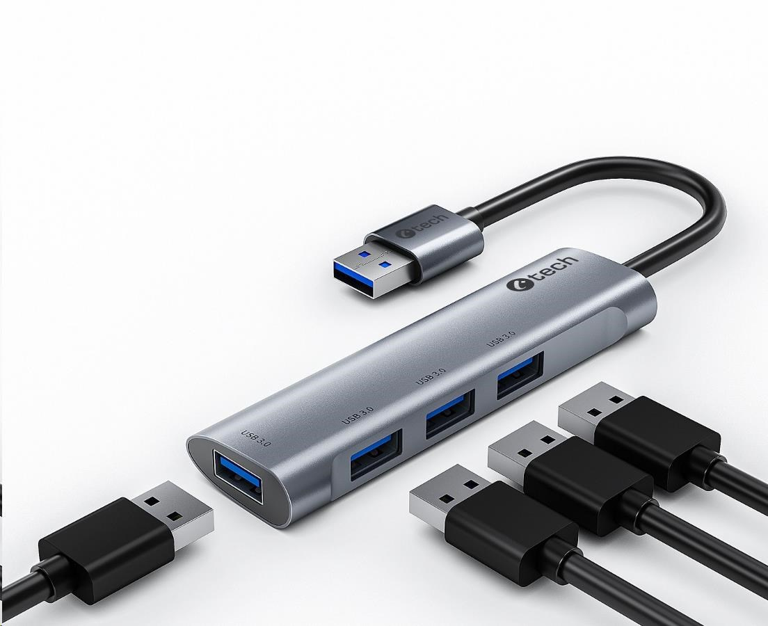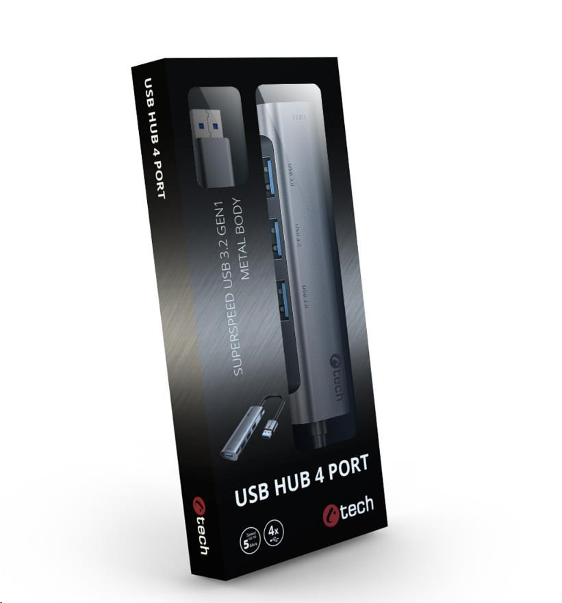 C-tech UHB-U3-AL je kompaktný USB hub s ľahkou a odolnou hliníkovou konštrukciou. Je vybavený 4 portami s rozhraním USB 3.2 Gen1. a maximálnou prenosovou rýchlosťou až 5Gb/s (10× rýchlejší ako USB 2.0). Je ideálnym riešením na rozšírenie dostupných USB portov pre notebooky, ultrabooky a iné zariadenia s obmedzeným počtom USB portov. Veľmi jednoducho tak svoje zariadenie rozšírite o ďalšie periférie, ako sú myši, USB dátové úložiská, externé disky. Hub podporuje technológiu Plug & Play, takže stačí ho pripojiť k zariadeniu a počkať na automatickú inštaláciu predvolených ovládačov bez potreby špeciálnych ovládačov.