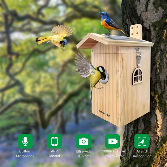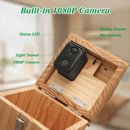 - Neviditelné pozorování: Navrženo tak, aby dokonale zapadlo do ptačí budky, takže ptáci mohou klidně hnízdit, zatímco vy vše sledujete.