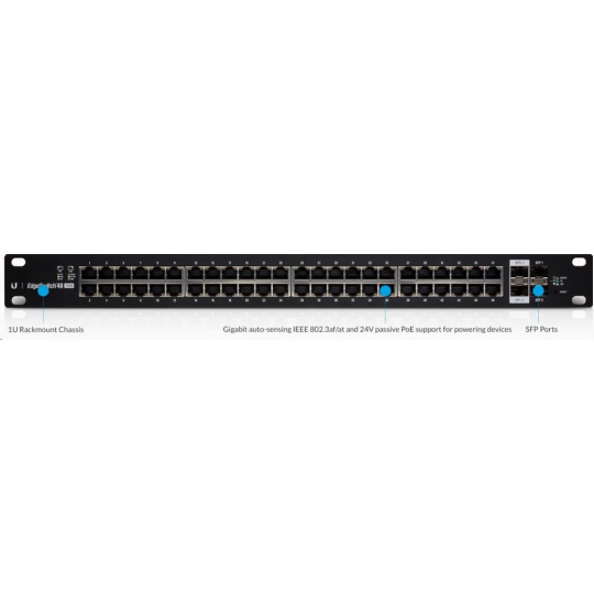 UBNT EdgeSwitch ES-48-500W [70Gbps, 500W, aktívny (802.3af/at) a pasívne (24 V) PoE, 2xSFP, 2xSFP+, L2/L3]