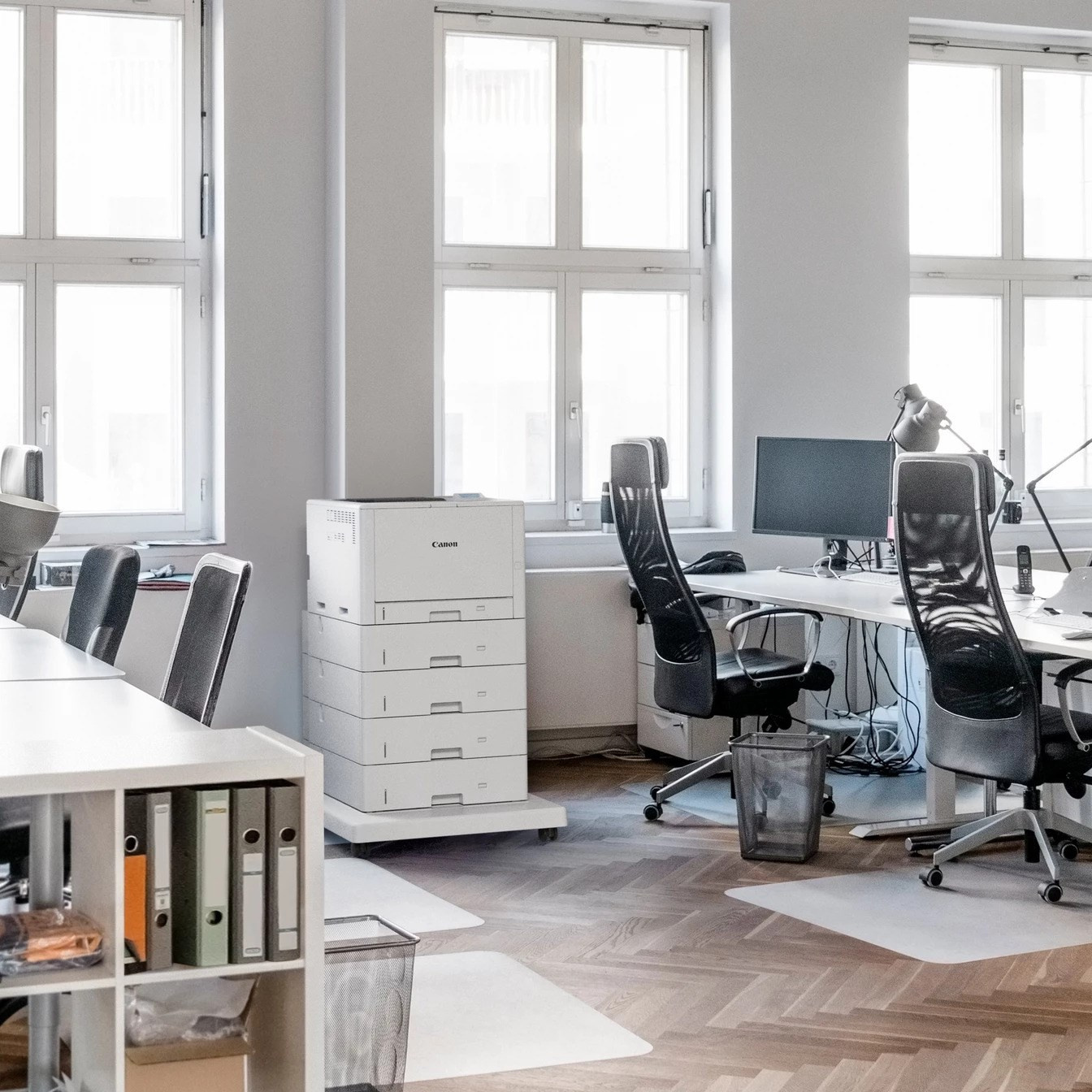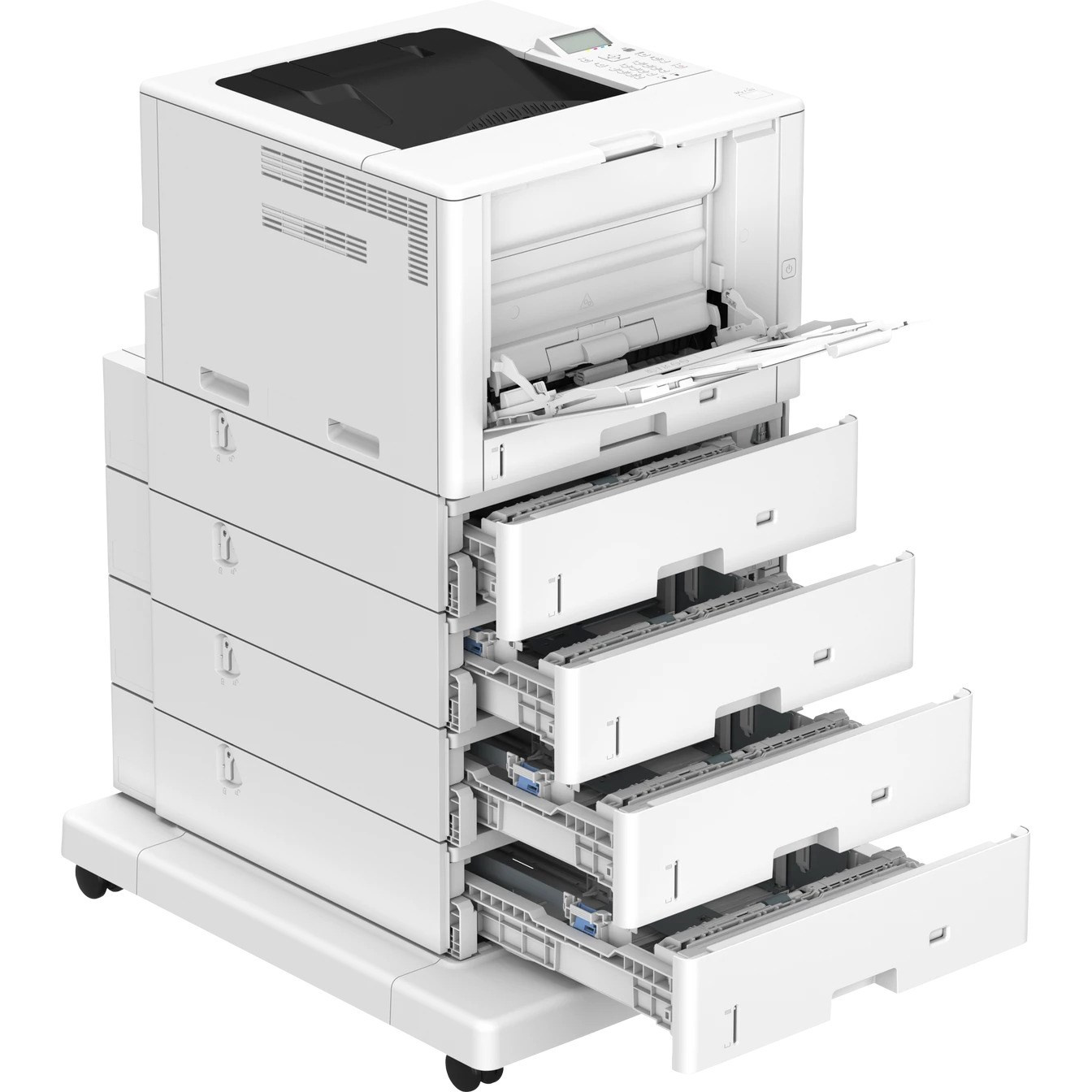 | Hmotnosť | Hlavná jednotka: približne 37,3 kg Hlavná jednotka + 4× podávač papiera PF-L1 (Paper Feeder PF-L1) + plochý podstavec BA1 (Plain Pedestal BA1): približne 104 kg |