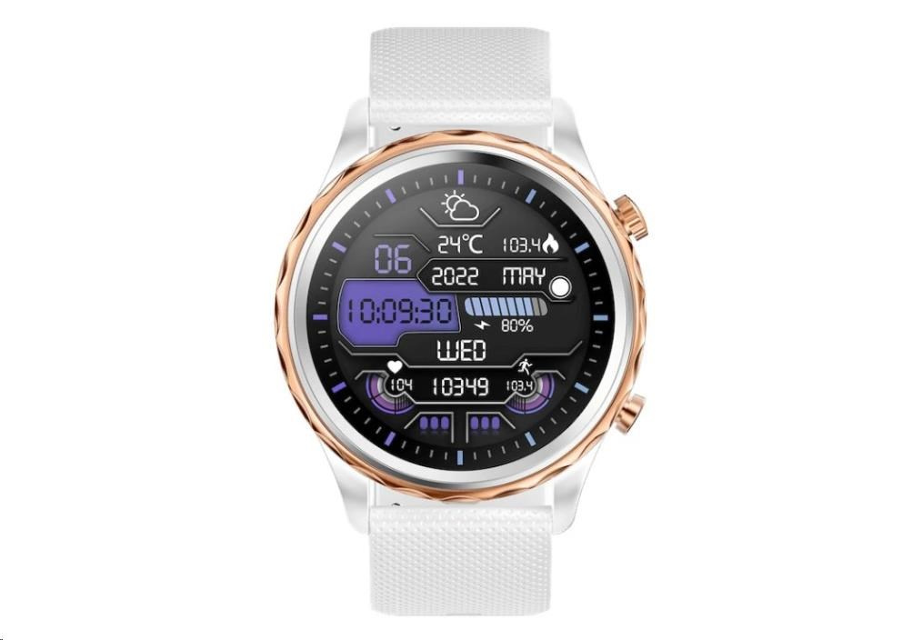 Moderné outdoorové fitness chytré hodinky Carneo Queen HR+ v elegantnej bielej farbe so striebornou korunkou z nehrdzavejúcej ocele majú kruhový farebný displej SUPER AMOLED chránený tvrdým minerálnym sklom. Umožňujú meranie srdcového tepu, stresu, BMI, najetých vzdialeností, monitorovanie spálených kalórií či kvality spánku. Obsahujú 380mAh batériu s výdržou až 5 dní. Podľa certifikácie IP67 sú odolné voči vode a prachu. Sú kompatibilné s operačným systémom iOS a Android. Hodinky majú na dotyk príjemný silikónový remienok v čiernej farbe, ktorý je možné vymeniť za remienok v inej farbe alebo kožený či kovový, čím môžete zmeniť športový vzhľad hodiniek na manažérsky. Vkusný outdoorovo-luxusný dizajn sa ľahko kombinuje s oblekom alebo voľnočasovým outfitom. Hodinky aj aplikácia sú kompletne v češtine, takže si budete určite rozumieť.