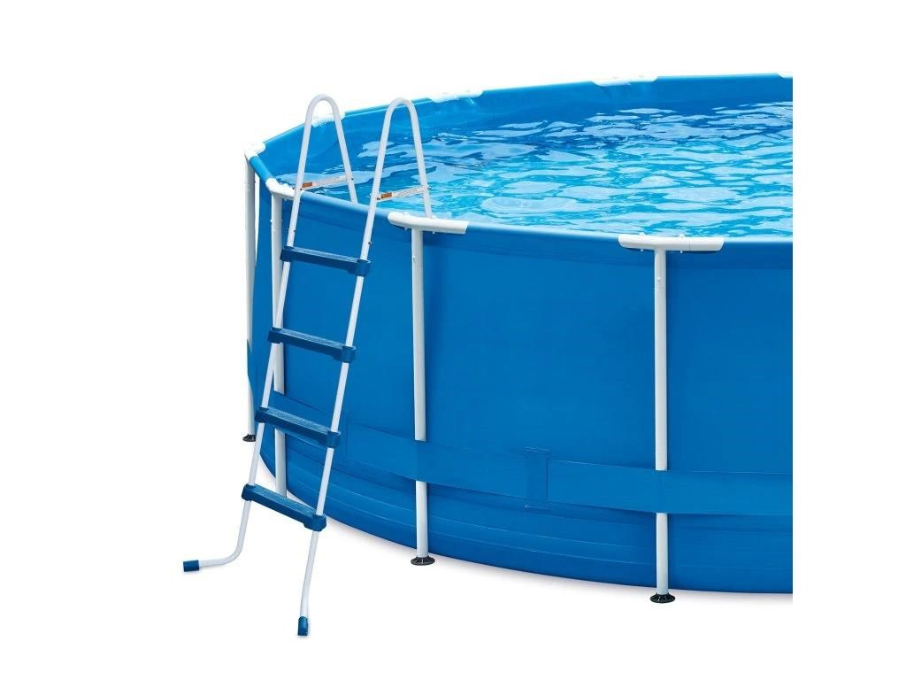 Bazénové schodíky 122 cm pre nadzemné bazény majú kovový rám a plastové stupne s bezpečnostným protisklzovým povrchom. Vysoká nosnosť až 150 kg. Sú vyrobené z vysoko kvalitných oceľových trubiek s lakovaným povrchom, takže sa vyznačujú veľmi dlhou životnosťou. Vďaka ľahkej konštrukcii ich pohodlne vložíte či vyberiete z bazénu.