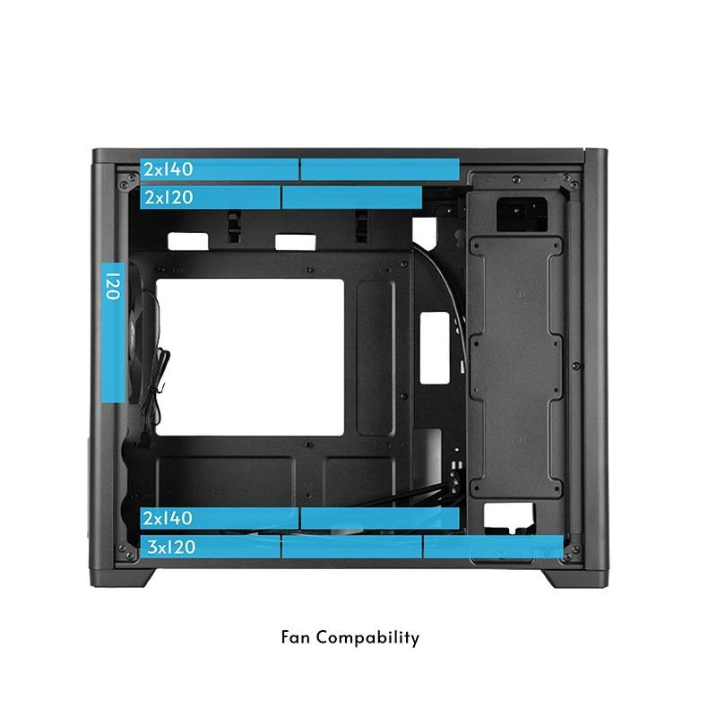 CHIEFTEC BX-MESH je moderný, kompaktný mini tower, ktorý kombinuje elegantný dizajn s vysokou funkčnosťou a jednoduchou inštaláciou pre výkonný systém. Vďaka kompatibilite so štandardným ATX PSU, m-ATX doskami a grafickými kartami do maximálnej dĺžky 380 mm a celkovo 6 možnými nainštalovanými ventilátormi by moderné konfigurácie nemali mať problémy s inštaláciou do BX-10B-M-OP z hľadiska priestoru alebo chladenia.