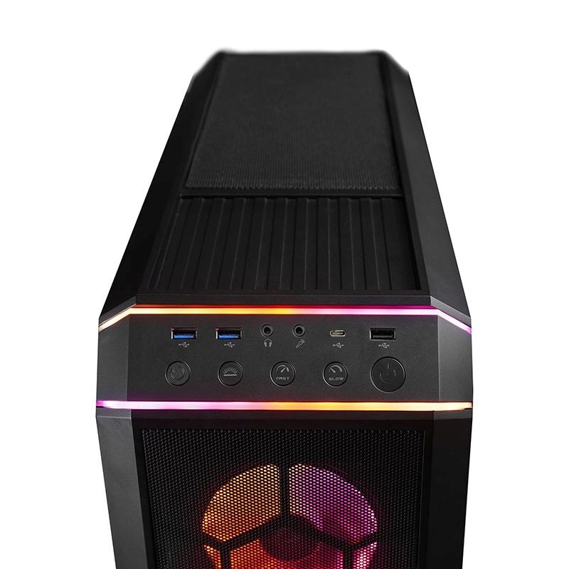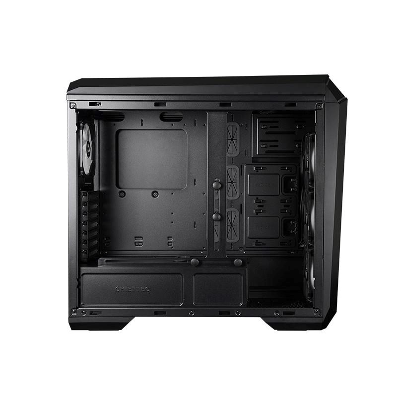 4 predinštalované 120 mm ventilátory RGB RAINBOW RING sú ovládané diaľkovým ovládaním, ktoré je súčasťou rozsiahleho "rozsahu dodávky". Prepracovaný dizajn interiéru umožňuje integráciu prídavného 360 mm chladiča vodného chladenia do prednej časti, takže táto druhá generácia herného puzdra Chieftec spĺňa a prekračuje očakávania každého hráča.