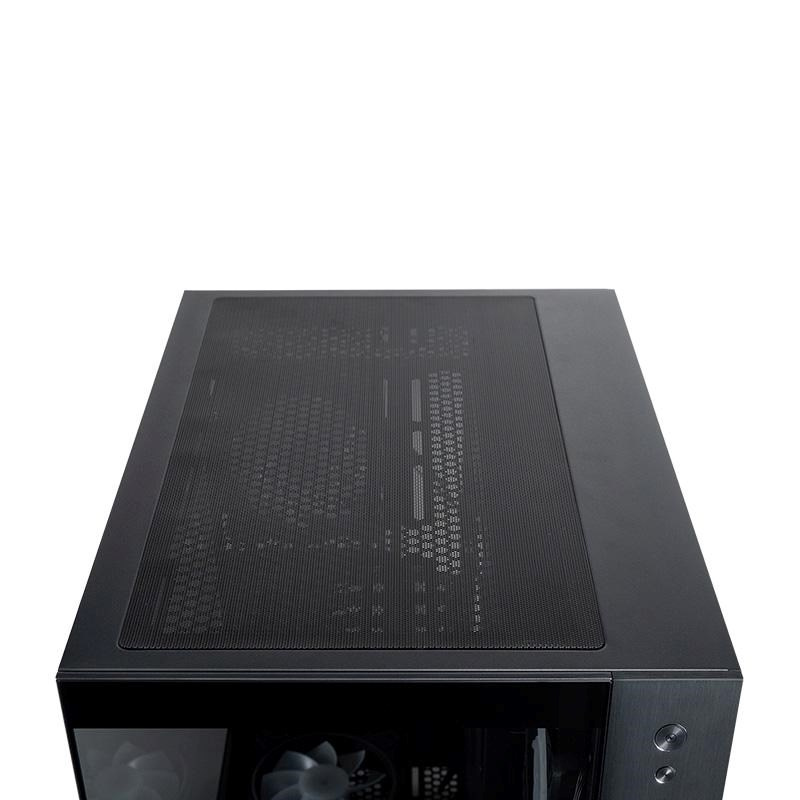 CHIEFTEC Visio má panely z tvrdeného skla na ľavej aj prednej strane a dvojkomorové usporiadanie pre najnovšie základné dosky so zadným pripojením (kompatibilné s ASUS BTF a MSI Project Zero). Táto konštrukcia zjednodušuje správu káblov a zaisťuje jasný výhľad do interiéru a nerušené prúdenie vzduchu.