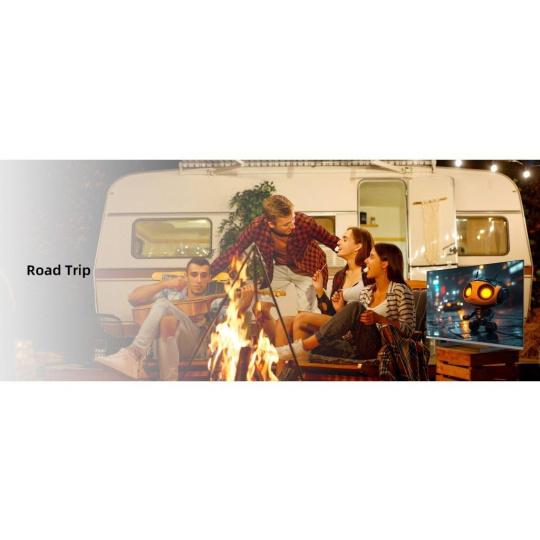 Televízor v bežnom režime vydrží hrať až tri hodiny iba na energiu z powerbanky. Keďže má powerbanka bežné USB-C vstupy, môžete ju tiež použiť ako zdroj energie na nabíjanie telefónu, slúchadiel, hodiniek či iných zariadení.