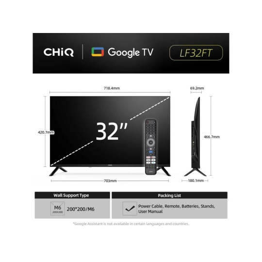 CHiQ LF32FT TV 32", FHD, smart, Google TV, dbx-tv, Dolby Audio, Frameless