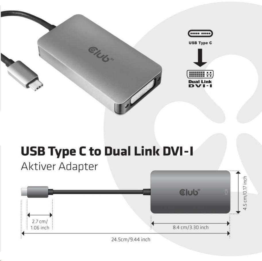 | Aktívny adaptér Club 3D USB Type-C na Dual Link DVI-I |
