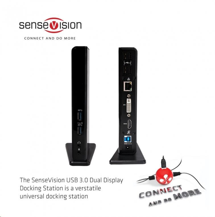Dokovacia stanica SenseVision USB 3.0 Dual Display je dokonalé univerzálne zariadenie, ktoré vám umožní rozšíriť výstupy vášho notebooku alebo ultrabooku, takže ho môžete používať ako tradičný stolný počítač.