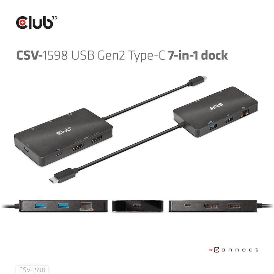 Club3D Dokovací stanice USB-C 7v1, 2xDP, 2xUSB-C, 2xUSB, 1xRJ45, černá