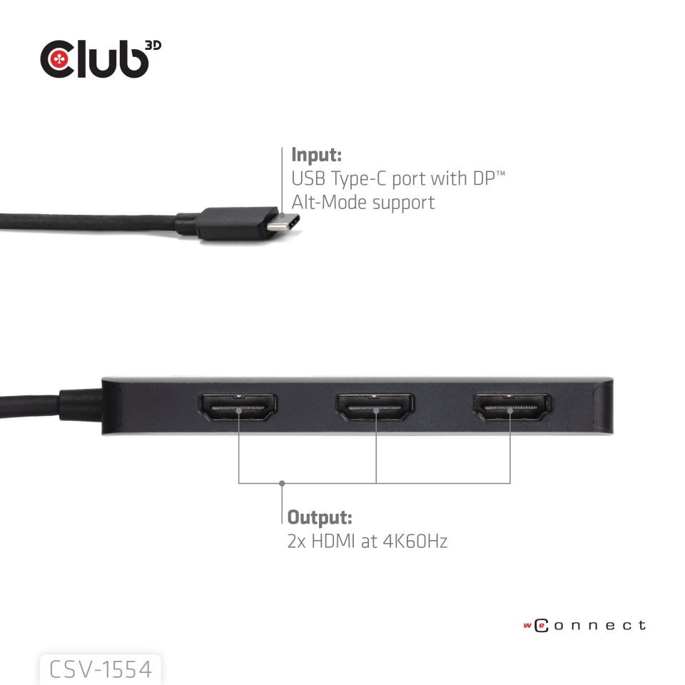 Club3D hub MST USB-C na 3xHDMI, Single: 8K30Hz, Triple: 4K60Hz