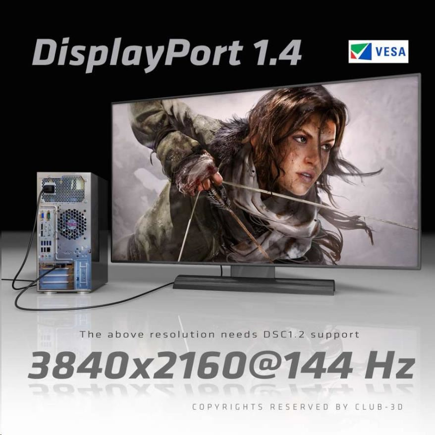 - Club 3D DisplayPort™ 1.4 HBR3 8K kábel.