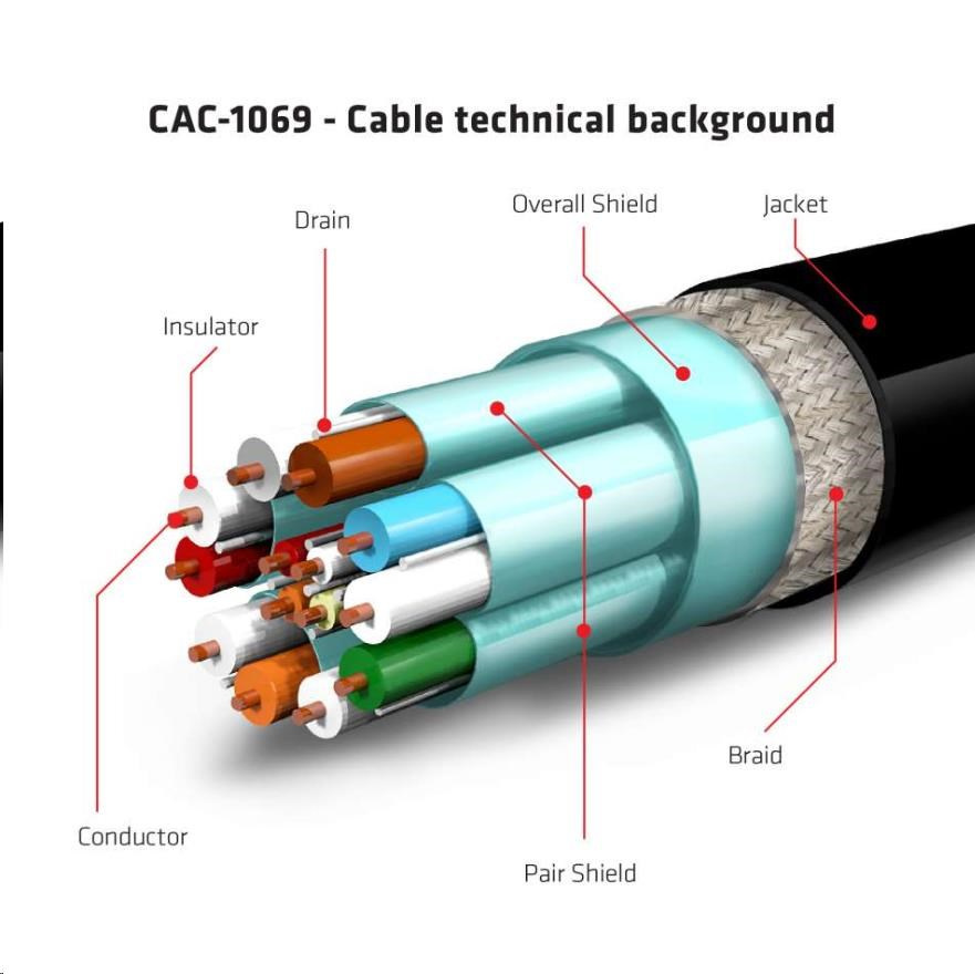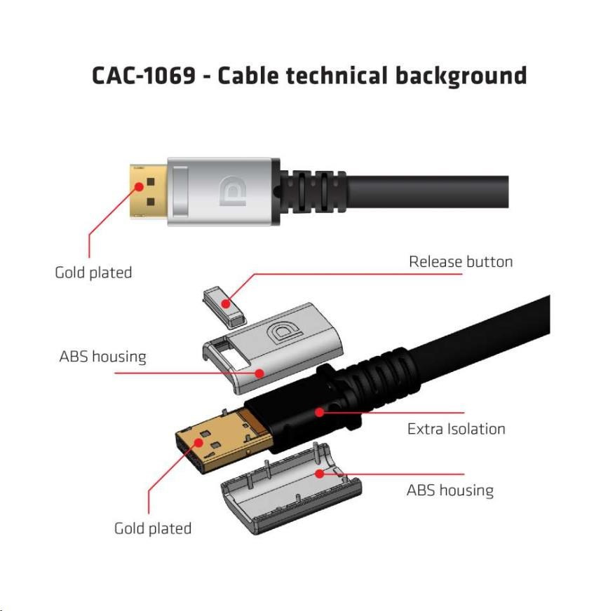 - Plne DisplayPort™ 1.4 Compliant, HBR3, 32.4Gbps, 24AWG